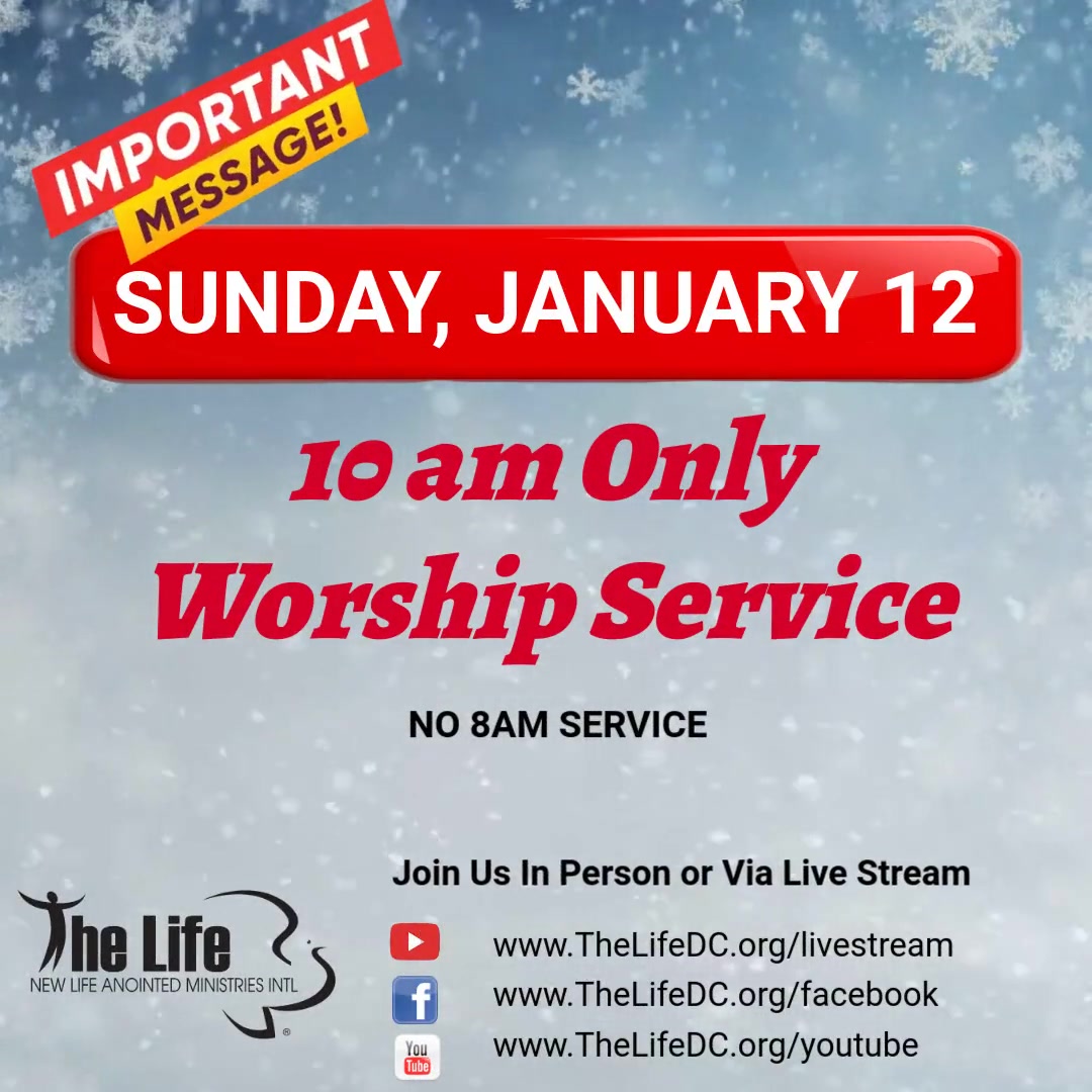 SPECIAL ALERT – On Sunday, January 12 The Life will have the 10am Worship Service ONLY. (No 8am Service) Join us in person or via live stream.